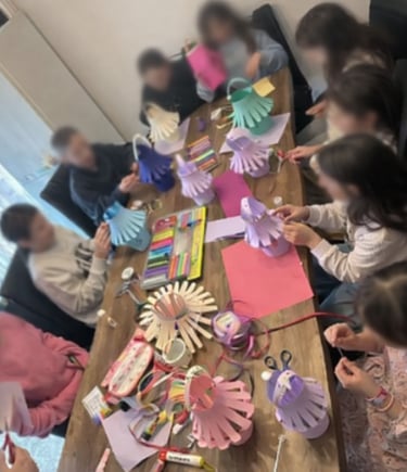 Gemeinsam mit den Kindern haben wir eine kreative Bastelaktivität durchgeführt. Mit bunten Papieren, Stiften und viel Fantasie sind tolle kleine Kunstwerke entstanden. Die Kinder hatten grossen Spass beim Basteln, Austauschen und gemeinsamen Arbeiten. Es war eine schöne und lehrreiche Aktivität, die sowohl die Kreativität als auch den Zusammenhalt gestärkt hat.